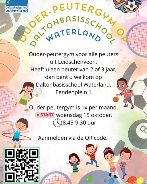 okt12025OUDER-PEUTERGYM voor alle peuters in Leidschenveen! 1x per maand op woensdag bij Daltonbasisschool Waterland. Opgeven via de QR-code.