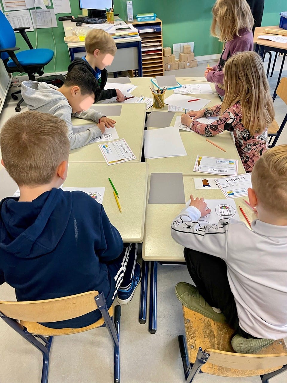 De groepen 1 /2 gingen aan de slag met het maken van een meetpaspoort. Ze ontdekken spelenderwijs allerlei maten met en van hun eigen lichaam.