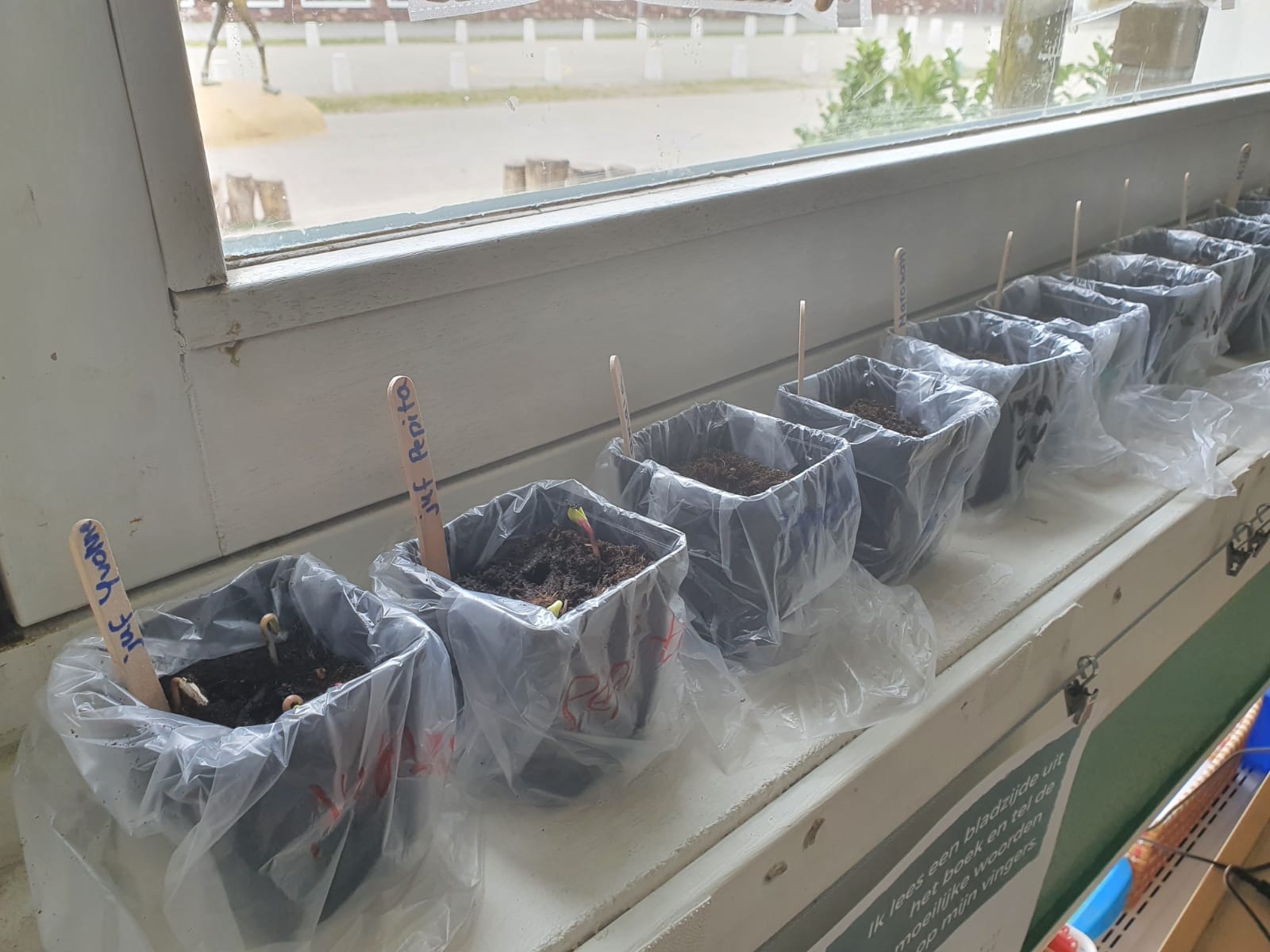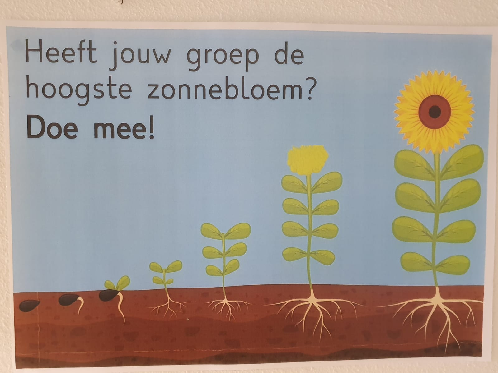 Elk kind kreeg een zonnebloempitje die zij zelf gingen planten. Elke dag worden deze (beginnende) plantjes met veel liefde verzorgd. Het wordt bijgehouden in het groeiboekje. Wie oh wie gaat er winnen?